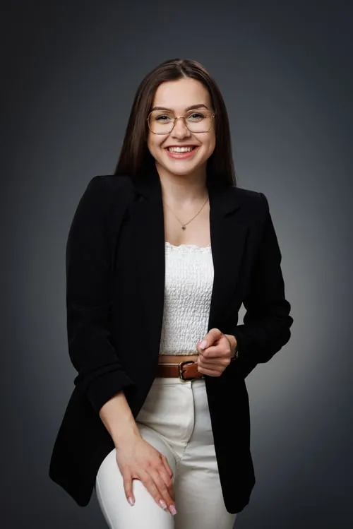 Vladyslava posiada wykształcenie z zakresu administracji publicznej (studia magisterskie) oraz nauk politycznych. Dodatkowo rozwijała swoje kompetencje w obszarze nowych technologii, kończąc szkolenie UX/UI Design, co wzmacnia jej podejście do nowoczesnych rozwiązań i komunikacji z klientem.